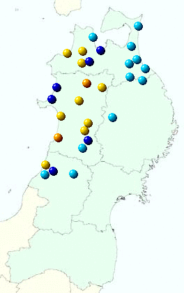 山形県 酒田,鶴岡,狩川,新庄,向町,尾花沢,村山,山形,長井,米沢