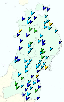 東北地方アメダス分布図(日別)