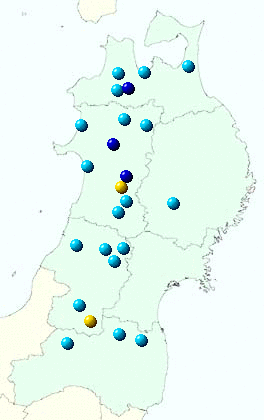 山形県 酒田,鶴岡,狩川,新庄,向町,尾花沢,村山,山形,長井,米沢