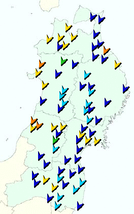 むつ 平均:  -1.7℃ 最高:   1.0℃ 最低:  -6.8℃ 小田野沢 平均:  -1.4℃ 最高:   1.3℃ 最低:  -5.7℃ 蟹田 平均:  -0.7℃ 最高:   0.6℃ 最低:  -3.5℃ 五所川原 平均:  -0.1℃ 最高:   1.0℃ 最低:  -2.3℃ 青森 平均:  -0.6℃ 最高:   1.1℃ 最低:  -2.9℃ 六ケ所 平均:  -1.4℃ 最高:  -0.2℃ 最低:  -4.0℃ 鯵ケ沢 平均:   0.5℃ 最高:   1.4℃ 最低:  -1.5℃ 弘前 平均:  -1.3℃ 最高:   0.2℃ 最低:  -4.2℃ 黒石 平均:  -1.8℃ 最高:   0.0℃ 最低:  -4.8℃ 三沢 平均:  -1.8℃ 最高:   1.3℃ 最低:  -5.3℃ 十和田 平均:  -1.8℃ 最高:   1.0℃ 最低:  -8.0℃ 八戸 平均:  -1.3℃ 最高:   2.4℃ 最低:  -5.8℃ 三戸 平均:  -0.9℃ 最高:   1.9℃ 最低:  -4.1℃ 能代 平均:   0.9℃ 最高:   2.3℃ 最低:  -2.2℃ 大館 平均:  -1.7℃ 最高:   0.8℃ 最低:  -7.5℃ 鹿角 平均:  -2.2℃ 最高:  -0.3℃ 最低:  -4.7℃ 大潟 平均:   1.5℃ 最高:   2.8℃ 最低:  -1.1℃ 阿仁合 平均:  -2.0℃ 最高:  -0.3℃ 最低:  -4.2℃ 秋田 平均:   0.8℃ 最高:   2.2℃ 最低:  -2.0℃ 角館 平均:  -2.1℃ 最高:   0.0℃ 最低:  -4.4℃ 大曲 平均:  -1.8℃ 最高:  -0.4℃ 最低:  -3.6℃ 本荘 平均:   1.5℃ 最高:   2.7℃ 最低:  -1.7℃ 横手 平均:  -1.7℃ 最高:   0.7℃ 最低:  -4.2℃ 湯沢 平均:  -1.7℃ 最高:   1.6℃ 最低:  -4.3℃ 軽米 平均:  -1.9℃ 最高:   0.7℃ 最低:  -5.3℃ 久慈 平均:  -0.6℃ 最高:   2.9℃ 最低:  -6.6℃ 岩手松尾 平均:  -3.4℃ 最高:   0.9℃ 最低:  -8.7℃ 雫石 平均:  -1.8℃ 最高:   0.5℃ 最低:  -4.8℃ 盛岡 平均:  -1.7℃ 最高:   2.3℃ 最低:  -5.7℃ 宮古 平均:  -0.5℃ 最高:   4.6℃ 最低:  -6.3℃ 紫波 平均:  -2.8℃ 最高:   2.3℃ 最低:  -8.3℃ 遠野 平均:  -2.8℃ 最高:   0.5℃ 最低:  -6.0℃ 北上 平均:  -0.9℃ 最高:   2.1℃ 最低:  -3.8℃ 若柳 平均:  -1.9℃ 最高:   1.7℃ 最低:  -5.3℃ 江刺 平均:  -1.2℃ 最高:   2.5℃ 最低:  -5.4℃ 一関 平均:  -0.2℃ 最高:   3.9℃ 最低:  -3.8℃ 千厩 平均:  -1.8℃ 最高:   2.8℃ 最低:  -6.7℃ 築舘 平均:  -2.3℃ 最高:   3.9℃ 最低:  -9.8℃ 米山 平均:  -1.7℃ 最高:   2.7℃ 最低:  -7.7℃ 古川 平均:  -1.2℃ 最高:   2.9℃ 最低:  -5.0℃ 大衡 平均:  -0.5℃ 最高:   3.2℃ 最低:  -6.4℃ 鹿島台 平均:  -0.6℃ 最高:   3.2℃ 最低:  -4.6℃ 石巻 平均:  -0.3℃ 最高:   3.6℃ 最低:  -5.1℃ 仙台 平均:   0.4℃ 最高:   4.7℃ 最低:  -4.6℃ 白石 平均:  -0.1℃ 最高:   3.4℃ 最低:  -3.4℃ 亘理 平均:  -1.2℃ 最高:   3.2℃ 最低:  -9.0℃ 酒田 平均:   2.2℃ 最高:   3.3℃ 最低:  -0.8℃ 鶴岡 平均:   2.4℃ 最高:   3.9℃ 最低:  -0.5℃ 狩川 平均:   0.9℃ 最高:   2.3℃ 最低:  -1.9℃ 新庄 平均:  -0.2℃ 最高:   2.3℃ 最低:  -3.4℃ 向町 平均:  -1.1℃ 最高:   1.4℃ 最低:  -4.5℃ 尾花沢 平均:  -0.9℃ 最高:   2.0℃ 最低:  -4.2℃ 村山 平均:  -3.0℃ 最高:   2.3℃ 最低:  -8.4℃ 山形 平均:  -1.2℃ 最高:   2.4℃ 最低:  -5.1℃ 長井 平均:  -0.2℃ 最高:   2.1℃ 最低:  -2.8℃ 米沢 平均:  -0.9℃ 最高:   1.1℃ 最低:  -3.4℃ 福島 平均:   0.4℃ 最高:   3.2℃ 最低:  -3.0℃ 相馬 平均:   0.3℃ 最高:   4.6℃ 最低:  -4.3℃ 喜多方 平均:  -1.0℃ 最高:   2.6℃ 最低:  -4.7℃ 飯舘 平均:  -2.6℃ 最高:   0.0℃ 最低:  -5.1℃ 猪苗代 平均:  -2.8℃ 最高:  -0.2℃ 最低:  -5.1℃ 二本松 平均:  -1.2℃ 最高:   3.5℃ 最低:  -5.3℃ 若松 平均:   0.1℃ 最高:   2.5℃ 最低:  -2.2℃ 船引 平均:  -1.3℃ 最高:   2.1℃ 最低:  -4.6℃ 浪江 平均:  -0.7℃ 最高:   5.0℃ 最低:  -7.1℃ 郡山 平均:   0.6℃ 最高:   2.5℃ 最低:  -1.4℃ 川内 平均:  -2.5℃ 最高:   2.8℃ 最低:  -7.6℃ 白河 平均:  -0.5℃ 最高:   3.2℃ 最低:  -2.8℃ 石川 平均:  -0.4℃ 最高:   3.7℃ 最低:  -3.4℃ 東白川 平均:  -2.8℃ 最高:   3.7℃ 最低:  -7.6℃ 小名浜 平均:   3.0℃ 最高:   7.3℃ 最低:  -1.3℃ むつ :   1.4時間 小田野沢 :   1.3時間 蟹田 :   0.7時間 五所川原 :   0.0時間 青森 :   0.6時間 六ケ所 :   0.5時間 鯵ケ沢 :   0.0時間 弘前 :   1.3時間 黒石 :   0.2時間 三沢 :   2.9時間 十和田 :   3.4時間 八戸 :   4.6時間 三戸 :   3.7時間 能代 :   0.6時間 大館 :   2.7時間 鹿角 :   2.9時間 大潟 :   1.4時間 阿仁合 :   0.1時間 秋田 :   0.1時間 角館 :   1.0時間 大曲 :   0.4時間 本荘 :   1.4時間 横手 :   2.1時間 湯沢 :   3.9時間 軽米 :   3.3時間 久慈 :   7.2時間 岩手松尾 :   4.9時間 雫石 :   3.7時間 盛岡 :   7.0時間 宮古 :   8.5時間 紫波 :   4.5時間 遠野 :   1.4時間 北上 :   2.2時間 若柳 :   3.1時間 江刺 :   6.2時間 一関 :   6.3時間 千厩 :   8.4時間 築舘 :   8.5時間 米山 :   9.3時間 古川 :   8.3時間 大衡 :   8.5時間 鹿島台 :   9.0時間 石巻 :   9.3時間 仙台 :   8.6時間 白石 :   5.3時間 亘理 :   4.4時間 酒田 :   3.5時間 鶴岡 :   2.4時間 狩川 :   2.8時間 新庄 :   2.5時間 向町 :   3.4時間 尾花沢 :   3.4時間 村山 :   3.7時間 山形 :   3.5時間 長井 :   1.7時間 米沢 :   3.4時間 福島 :   2.9時間 相馬 :   8.1時間 喜多方 :   6.2時間 飯舘 :   5.8時間 猪苗代 :   4.0時間 二本松 :   4.2時間 若松 :   3.8時間 船引 :   7.9時間 浪江 :   6.3時間 郡山 :   4.7時間 川内 :   5.8時間 白河 :   3.5時間 石川 :   5.9時間 東白川 :   5.0時間 小名浜 :   6.7時間 むつ :   0.5mm 小田野沢 :   0.0mm 蟹田 :   0.5mm 五所川原 :   1.0mm 青森 :   3.5mm 六ケ所 :   1.5mm 鯵ケ沢 :   0.5mm 弘前 :   3.5mm 黒石 :   4.5mm 三沢 :   0.5mm 十和田 :   0.0mm 八戸 :   0.0mm 三戸 :   0.0mm 能代 :   1.0mm 大館 :   3.0mm 鹿角 :   1.