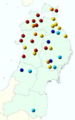 山形県 酒田,鶴岡,狩川,新庄,向町,尾花沢,村山,山形,長井,米沢