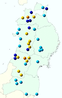 東北地方アメダス分布図(日別)