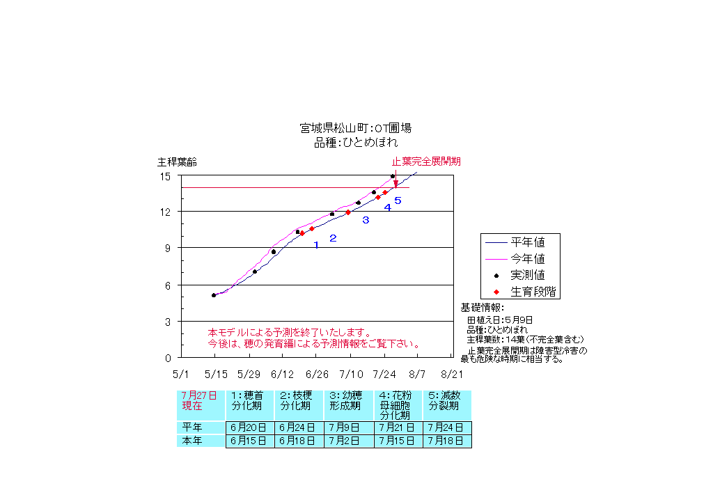 玄米の発育予測  Previous Year < 2002年 2003年 > Next Year