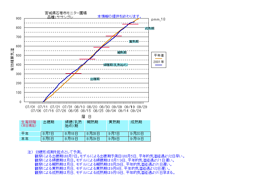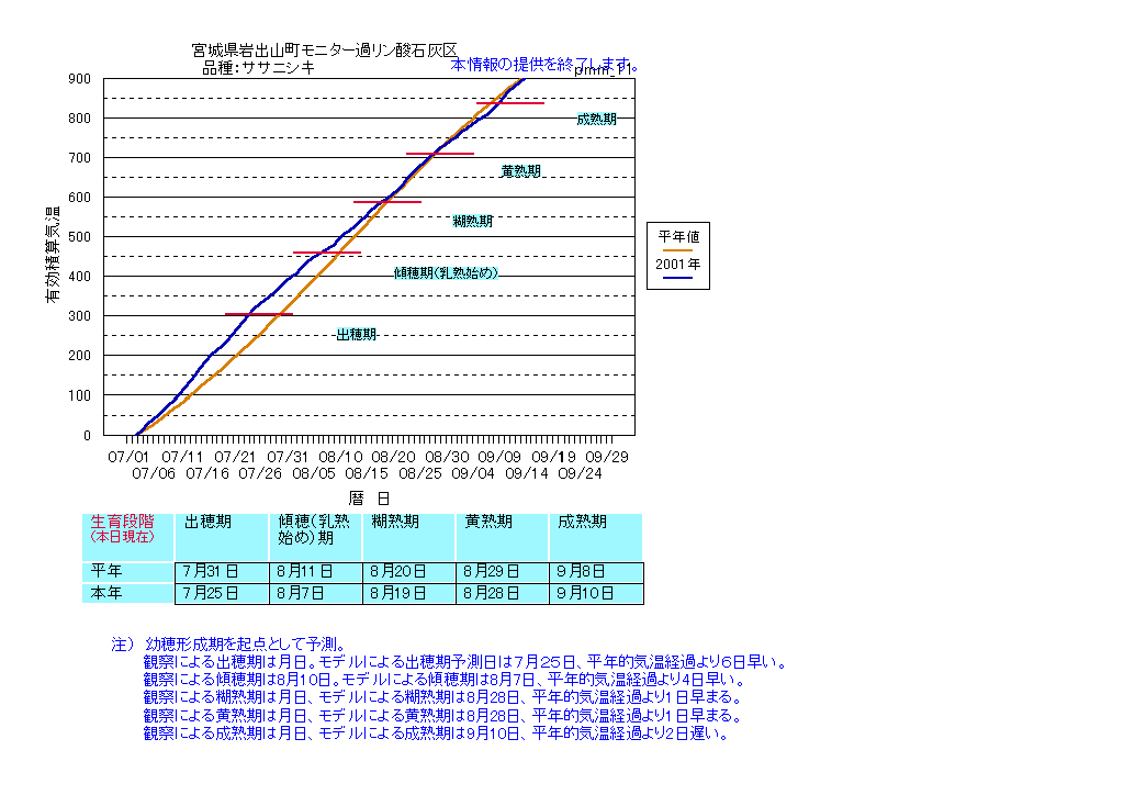 | 宮城県岩出山町 | YK(対照)圃場 | <葉齢進度予測編> | ・ | <穂の発育予測編> |