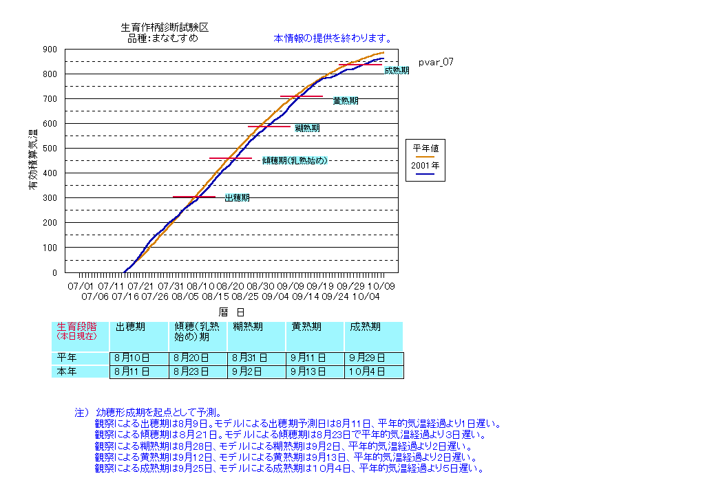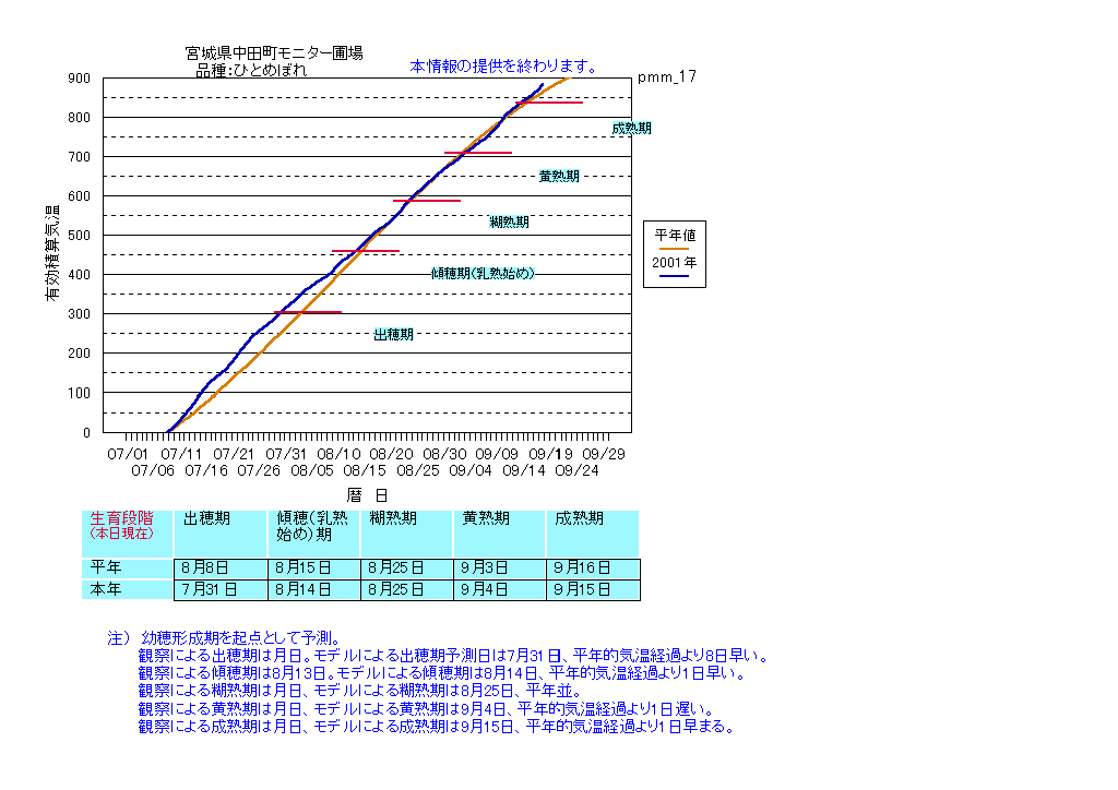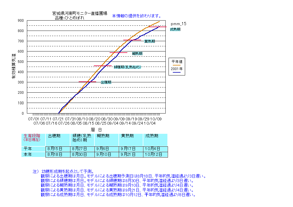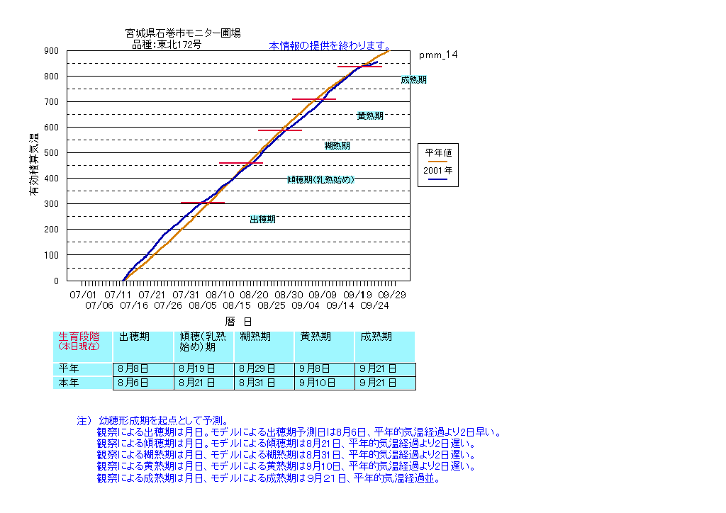 | 宮城県大衡 | まなむすめ | <葉齢進度予測編> | ・ | <穂の発育予測編> | ・ | <玄米の発育予測編> |