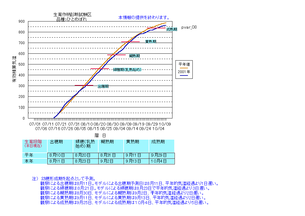 | 福島県東白川 | ひとめぼれ | <葉齢進度予測編> | ・ | <穂の発育予測編> | ・ | <玄米の発育予測編> |