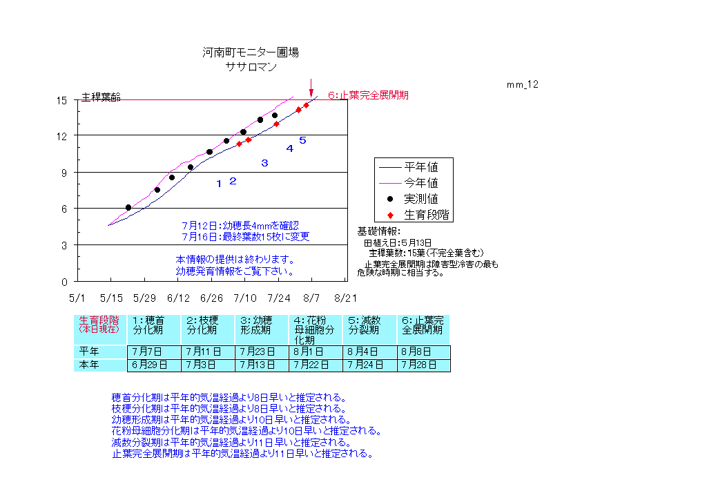 幼穂の発育予測  Previous Year < 2001年 2002年 2003年 2004年 2005年 > Next Year