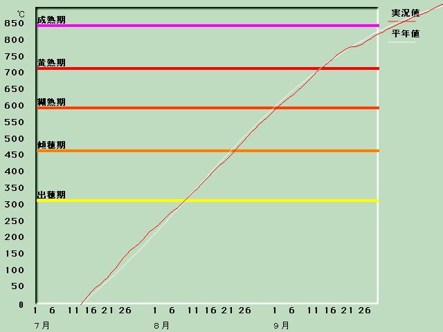 2001年玄米の生育進度(鯵ケ沢 むつほまれ)(10/31現在)