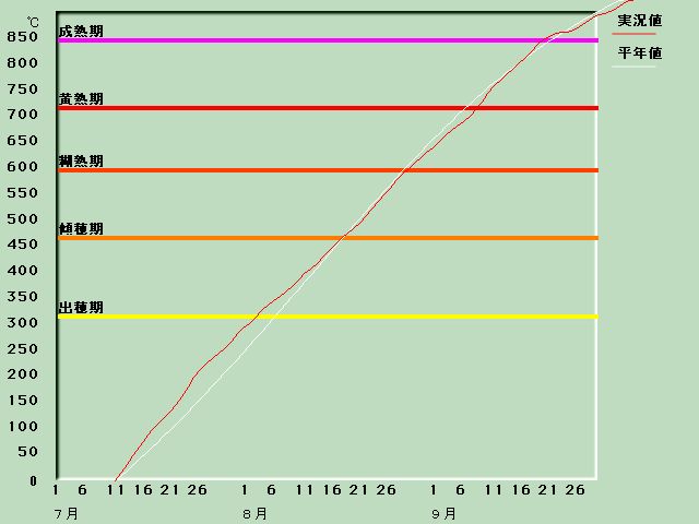 2001年玄米の生育進度(鹿島台 ササニシキ)(10/31現在)