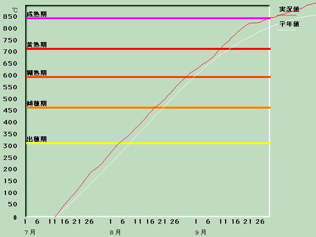 2001年玄米の生育進度(猪苗代 初星)(10/31現在)