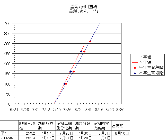 幼穂の発育予測  Previous Year < 2001年 2002年 2003年 2004年 2005年 > Next Year