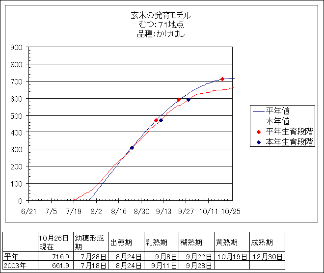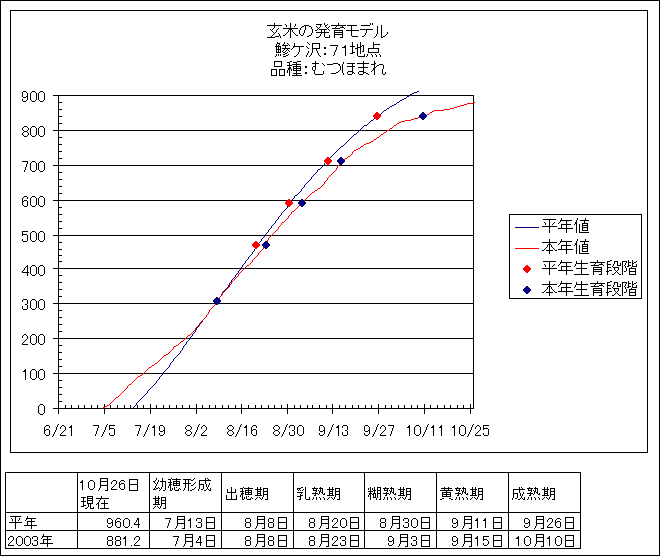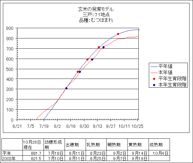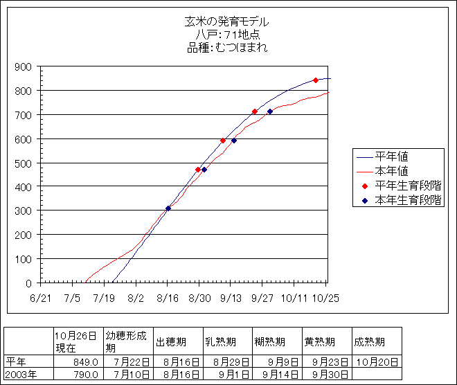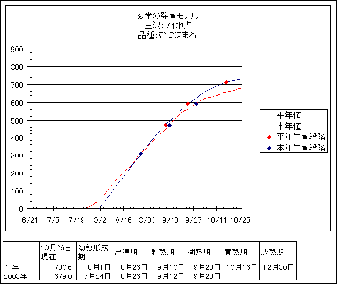 | 青森県三沢 | むつほまれ | <葉齢進度予測編> | ・ | <穂の発育予測編> | ・ | <玄米の発育予測編> |