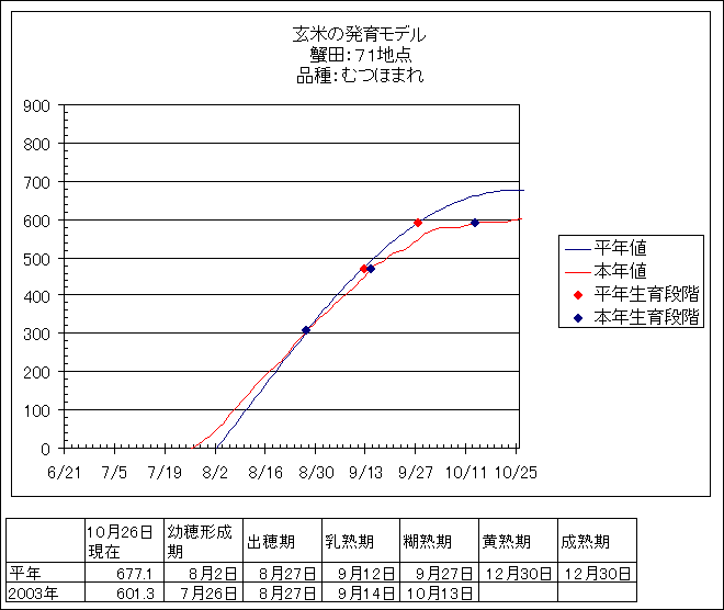 | 青森県蟹田 | むつほまれ | <葉齢進度予測編> | ・ | <穂の発育予測編> | ・ | <玄米の発育予測編> |