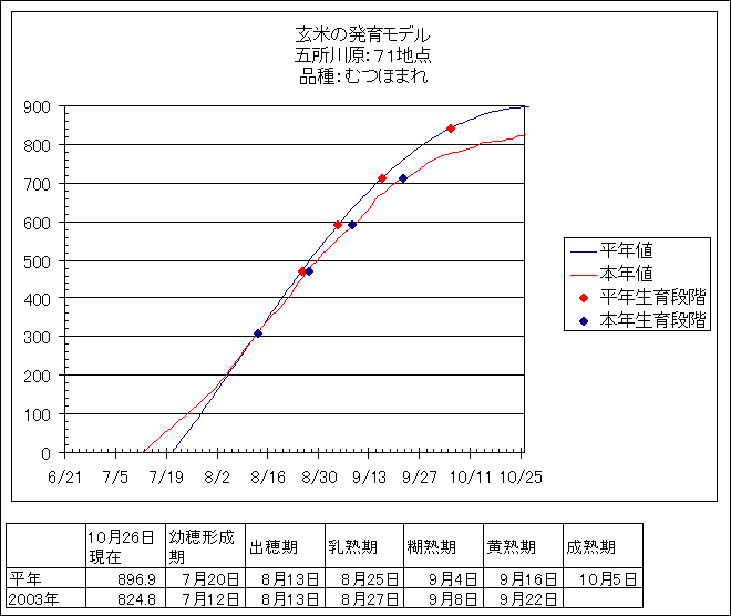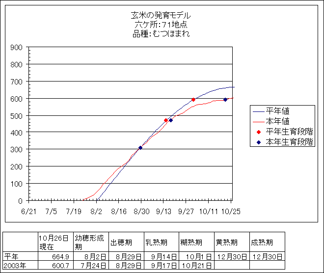 | 青森県六ヶ所 | むつほまれ | <葉齢進度予測編> | ・ | <穂の発育予測編> | ・ | <玄米の発育予測編> |