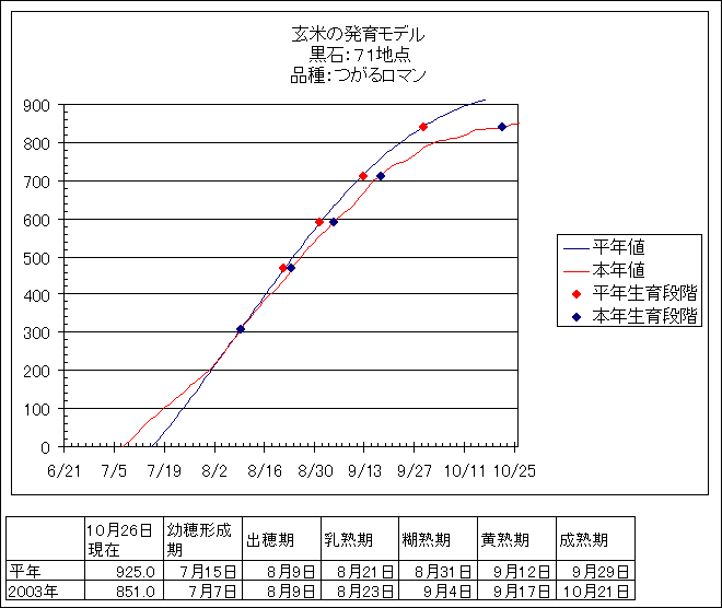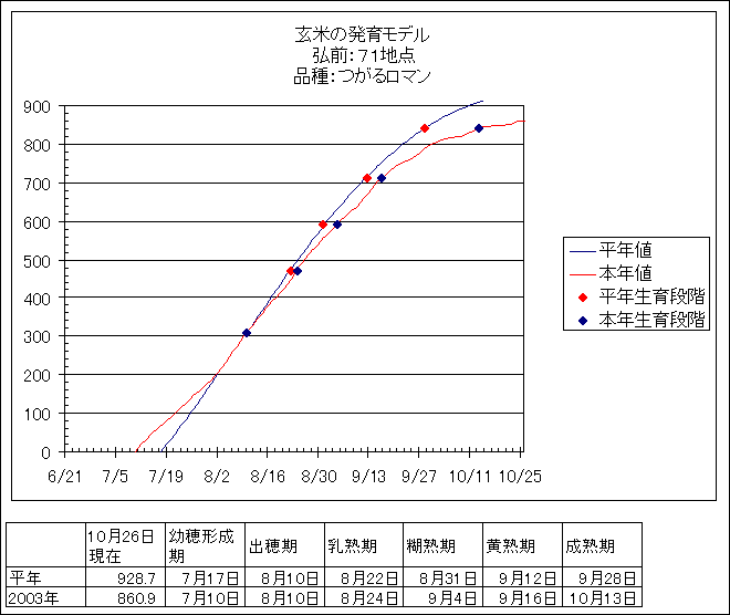 | 青森県弘前 | つがるロマン | <葉齢進度予測編> | ・ | <穂の発育予測編> | ・ | <玄米の発育予測編> |
