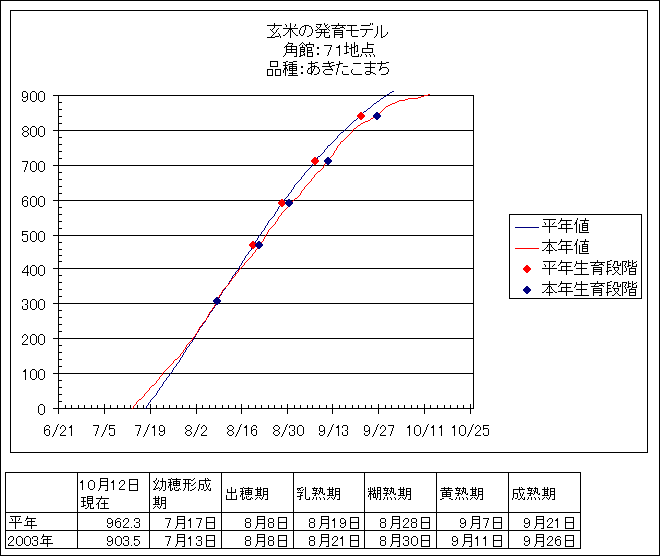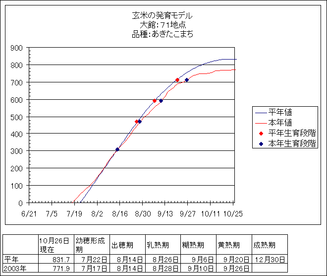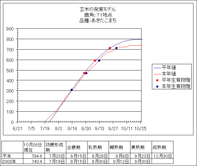 | 秋田県角館 | あきたこまち | <葉齢進度予測編> | ・ | <穂の発育予測編> | ・ | <玄米の発育予測編> |