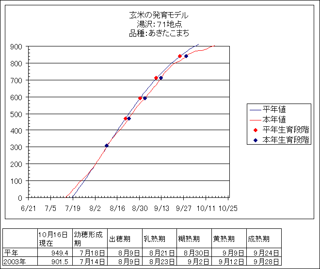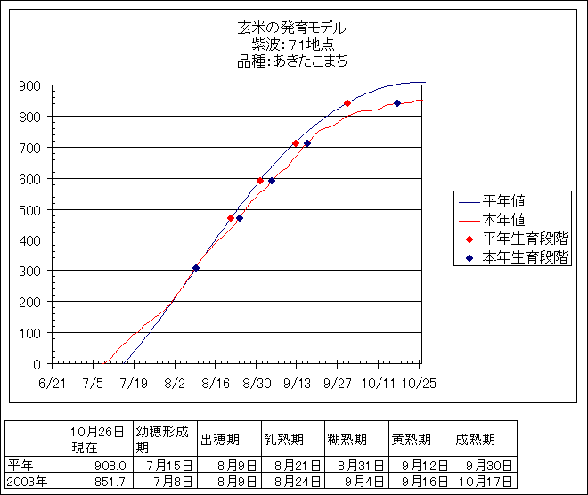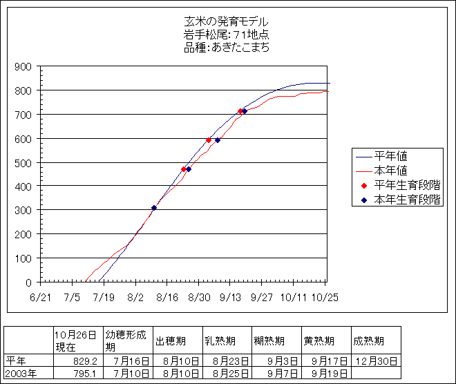 | 秋田県阿仁合 | あきたこまち | <葉齢進度予測編> | ・ | <穂の発育予測編> | ・ | <玄米の発育予測編> |