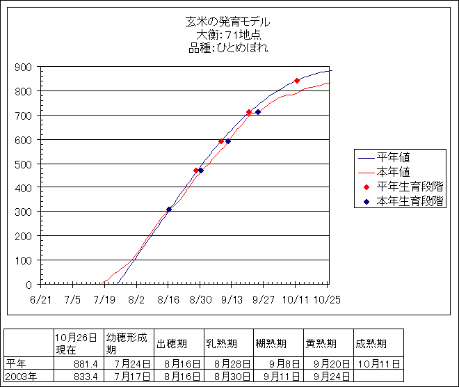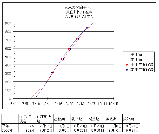 | 福島県船引 | ひとめぼれ | <葉齢進度予測編> | ・ | <穂の発育予測編> | ・ | <玄米の発育予測編> |