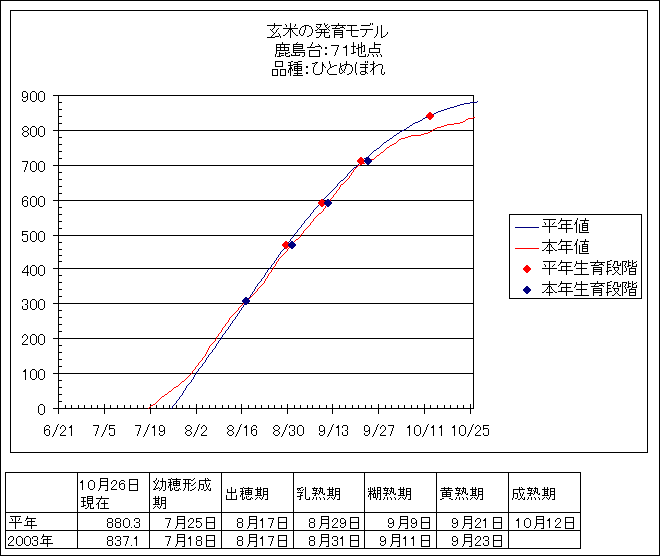 | 宮城県築館 | ひとめぼれ | <葉齢進度予測編> | ・ | <穂の発育予測編> | ・ | <玄米の発育予測編> |