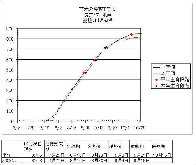 | 山形県新庄 | はえぬき | <葉齢進度予測編> | ・ | <穂の発育予測編> | ・ | <玄米の発育予測編> |