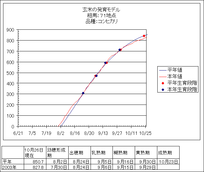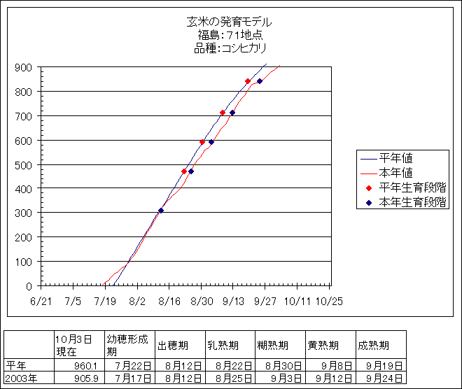 | 福島県郡山 | コシヒカリ | <葉齢進度予測編> | ・ | <穂の発育予測編> | ・ | <玄米の発育予測編> |