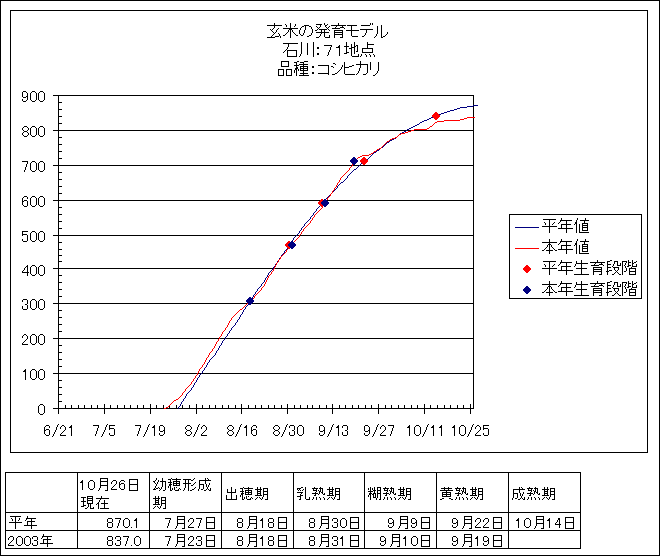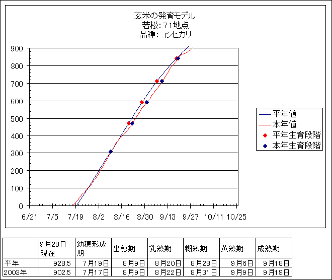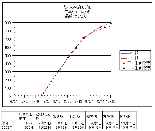 | 福島県若松 | コシヒカリ | <葉齢進度予測編> | ・ | <穂の発育予測編> | ・ | <玄米の発育予測編> |