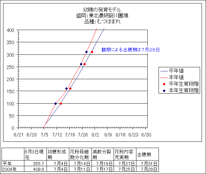 幼穂の発育予測  Previous Year < 2002年 2003年 2004年・ 2005年 2006年 > Next Year