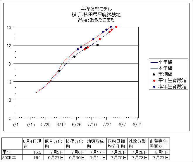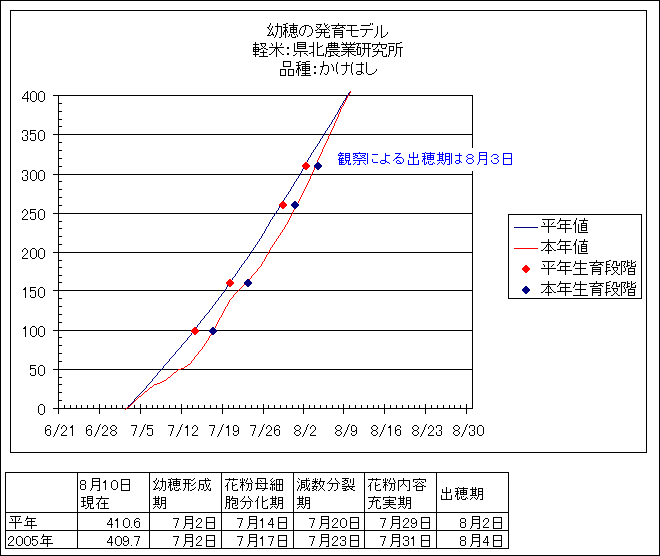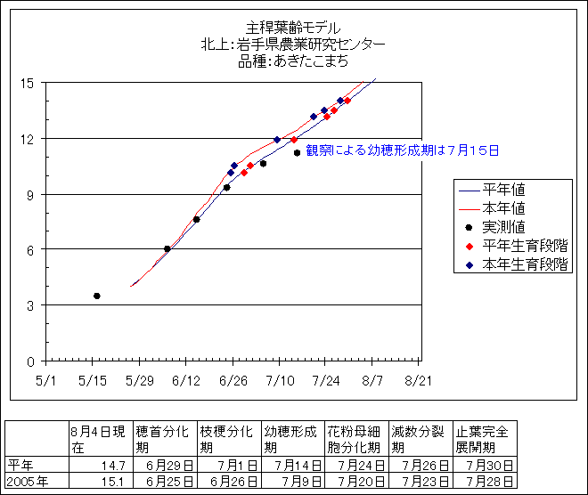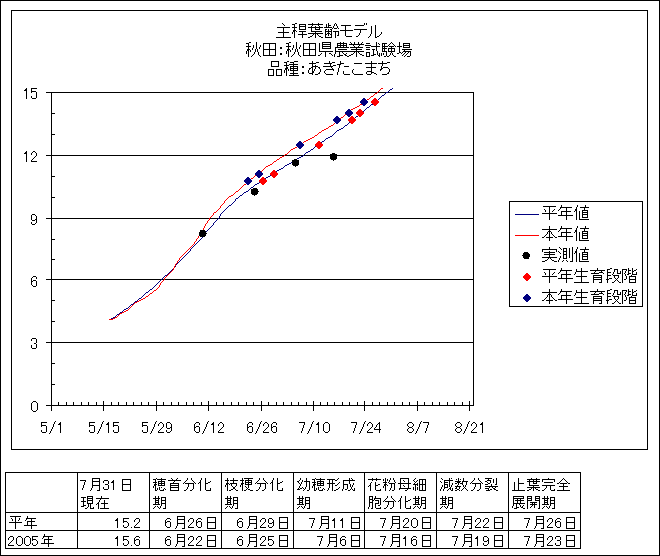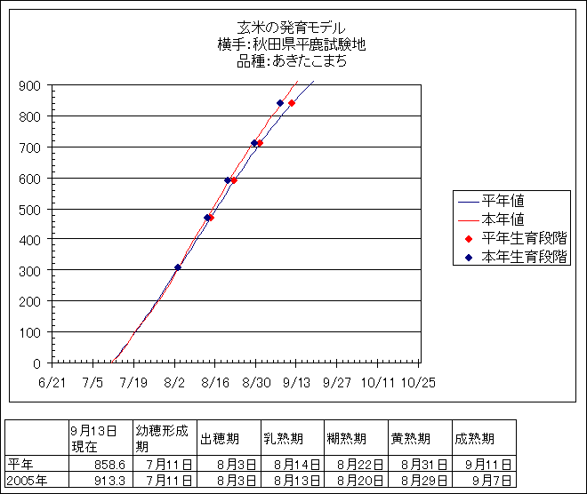 | 秋田県農業試験場 | あきたこまち | <葉齢進度予測編> | ・ | <穂の発育予測編> | ・ | <玄米の発育予測編> |