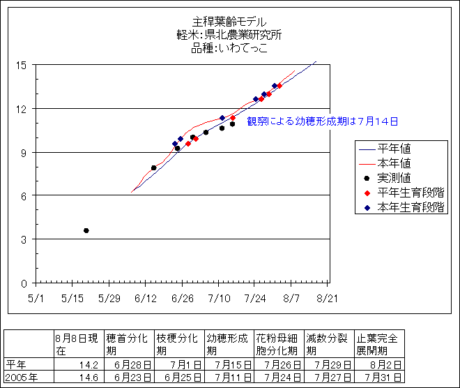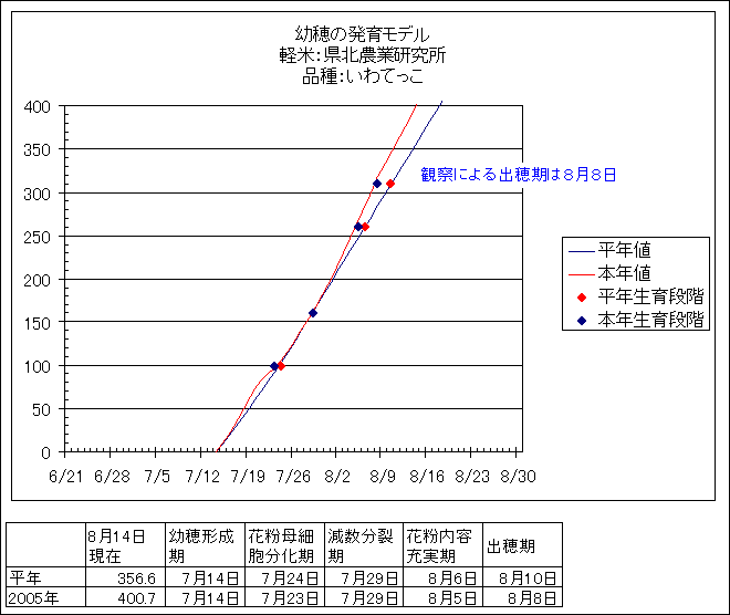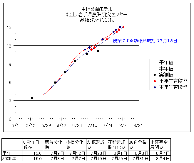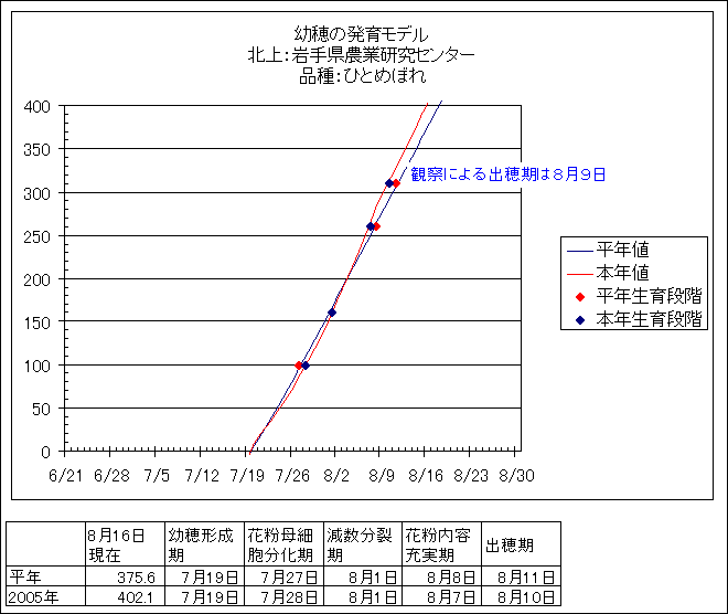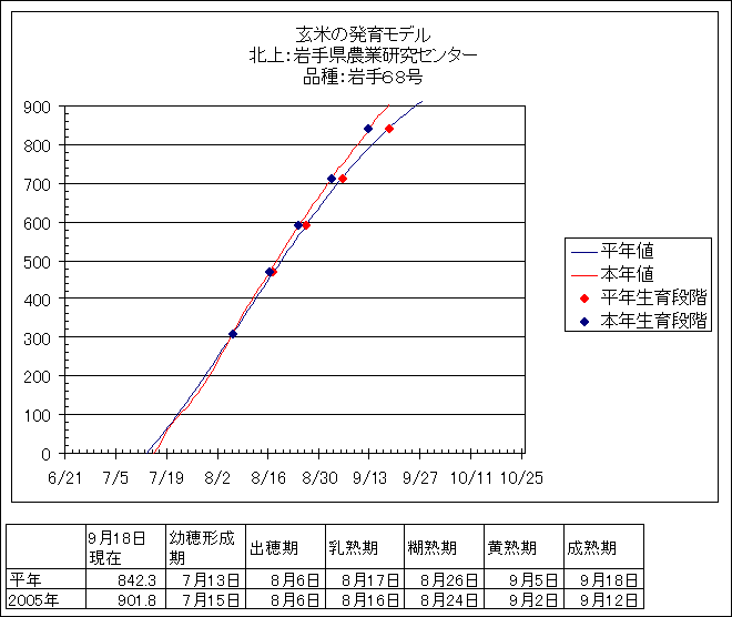 | 岩手県農業研究センター | ひとめぼれ | <葉齢進度予測編> | ・ | <穂の発育予測編> | ・ | <玄米の発育予測編> |