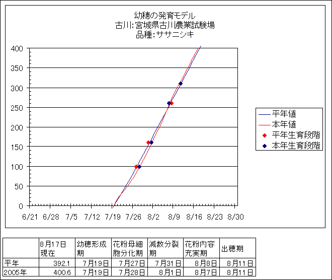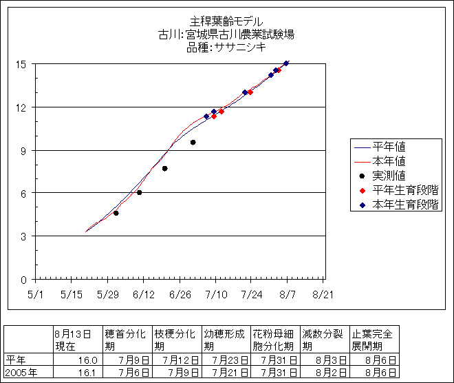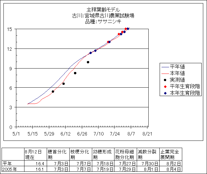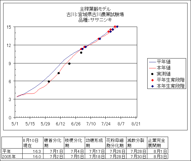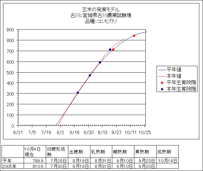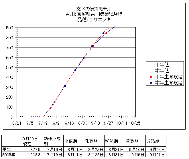 | 宮城県古川農業試験場 | ササニシキ | <葉齢進度予測編> | ・ | <穂の発育予測編> | ・ | <玄米の発育予測編> |