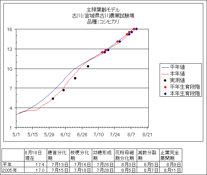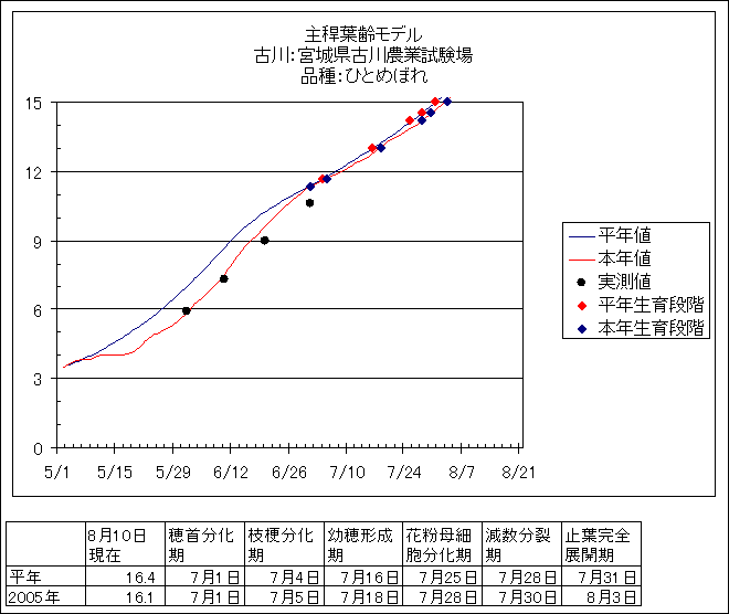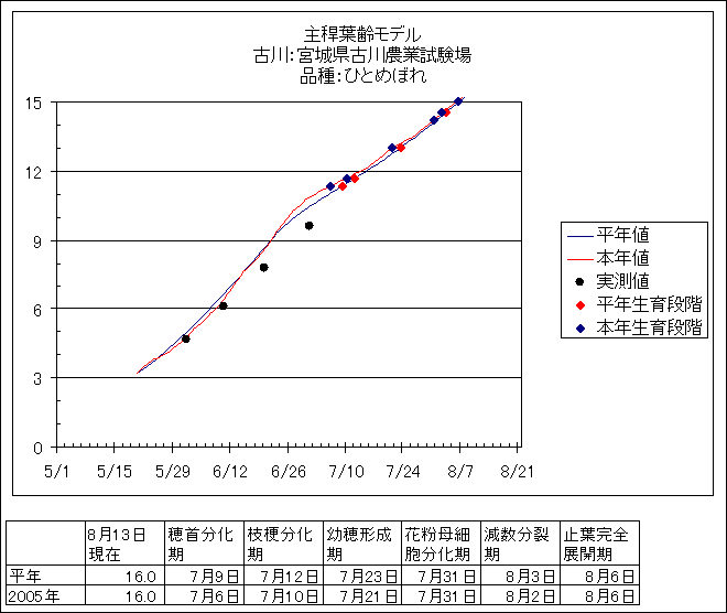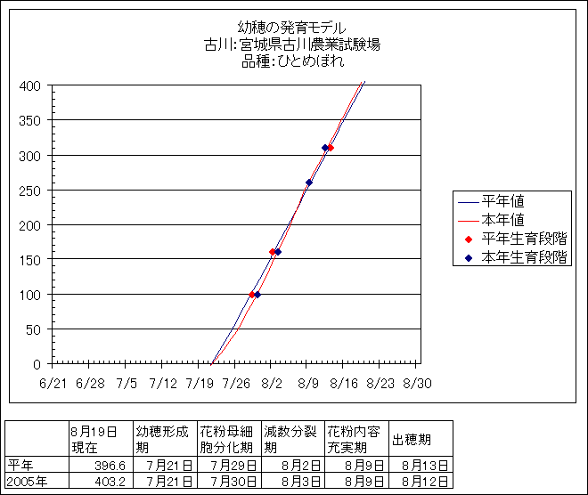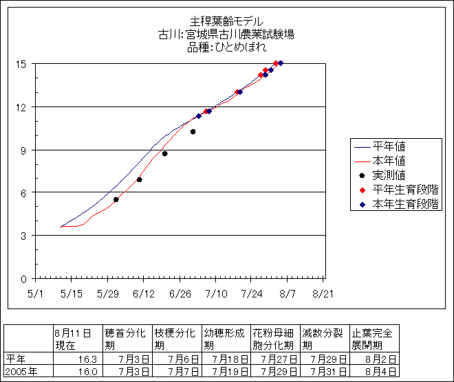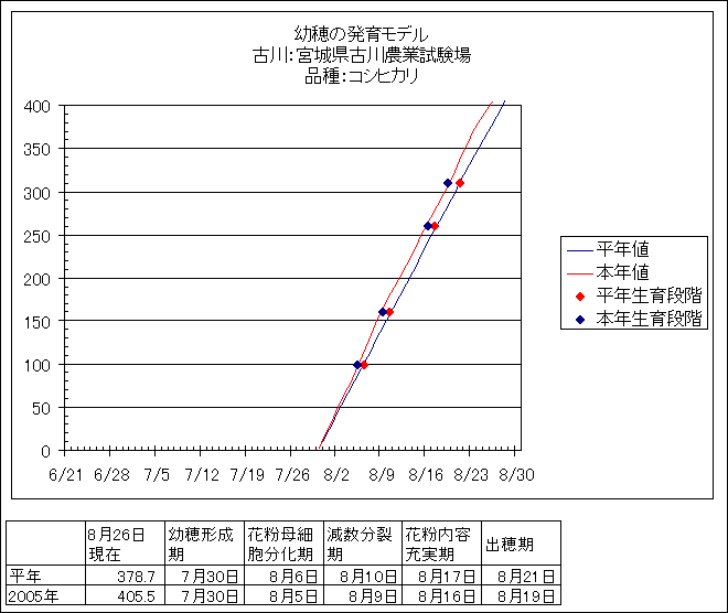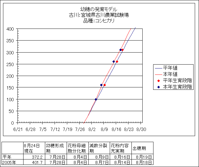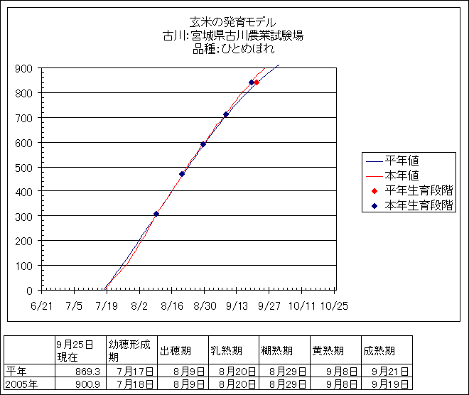 | 宮城県古川農業試験場 | ひとめぼれ | <葉齢進度予測編> | ・ | <穂の発育予測編> | ・ | <玄米の発育予測編> |