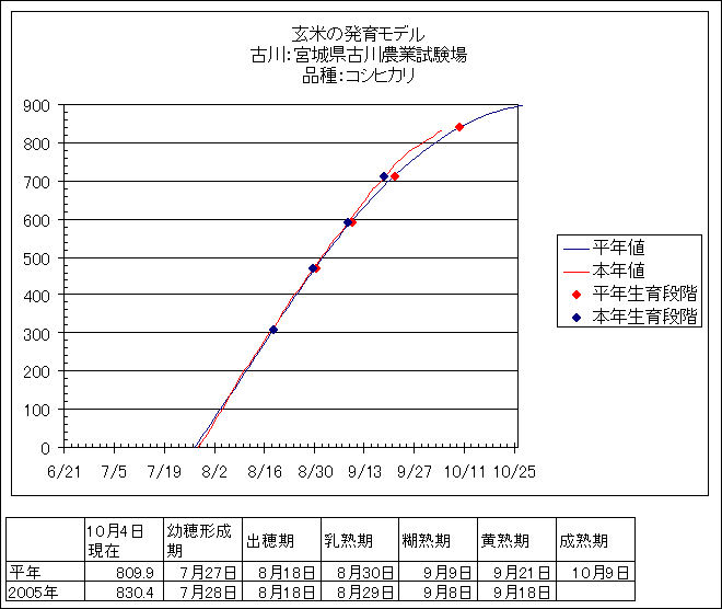 | 宮城県古川農業試験場 | コシヒカリ | <葉齢進度予測編> | ・ | <穂の発育予測編> | ・ | <玄米の発育予測編> |
