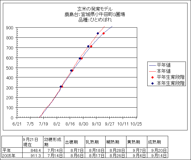玄米の発育予測  Previous Year < 2003年 2004年 2005年・ 2006年 2007年 > Next Year
