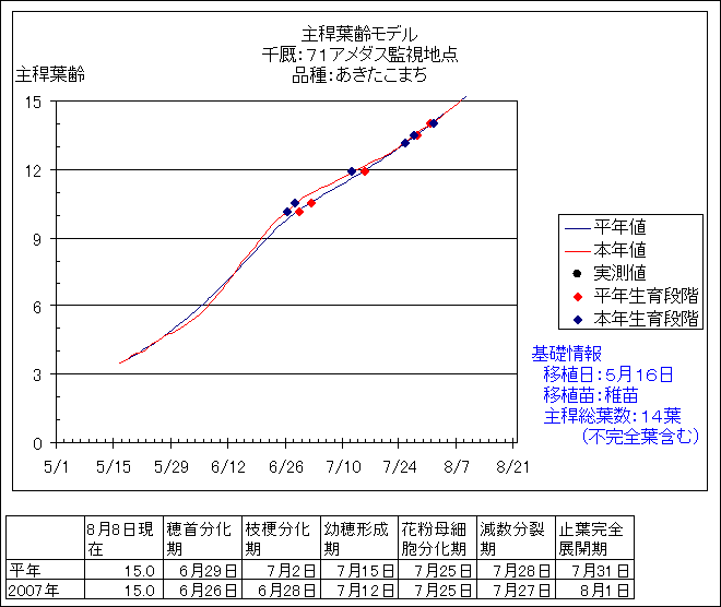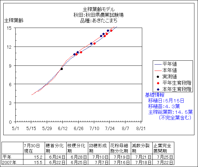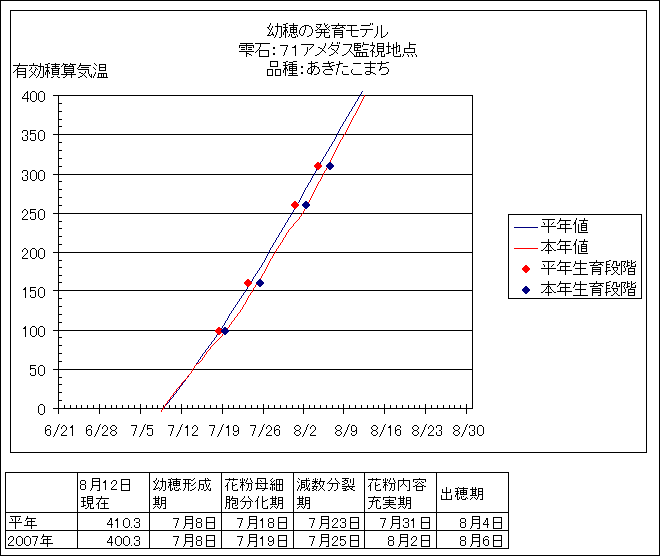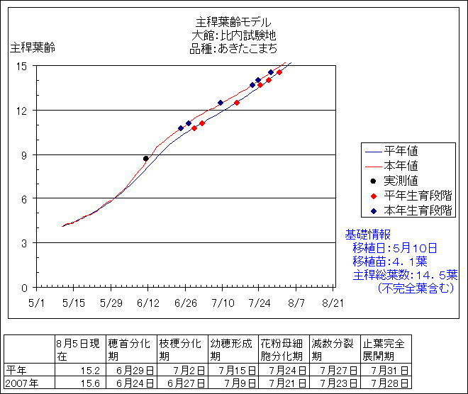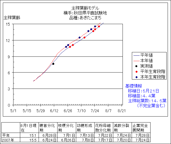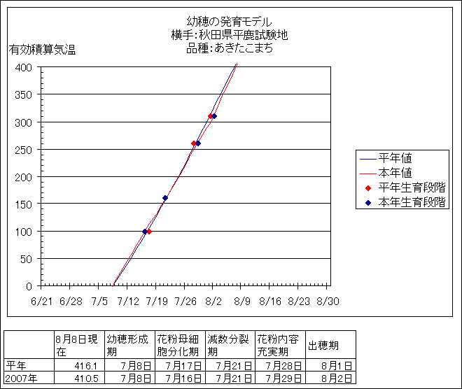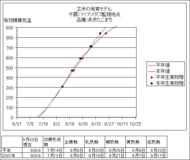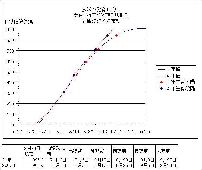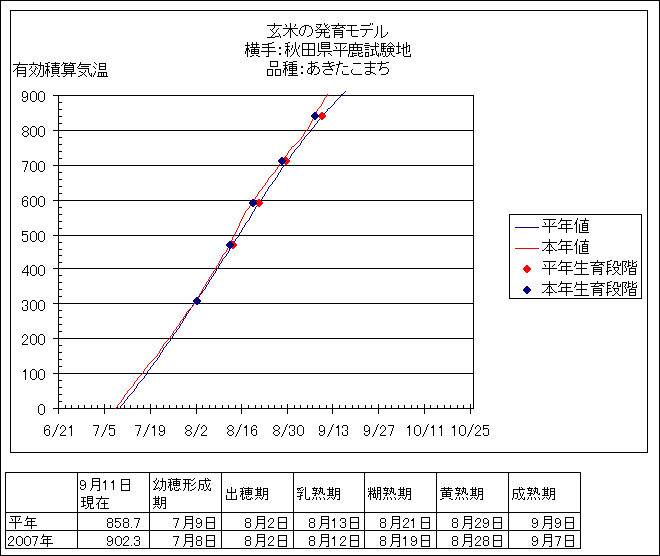 | 秋田県平鹿試験地 | あきたこまち | <葉齢進度予測編> | ・ | <穂の発育予測編> | ・ | <玄米の発育予測編> |