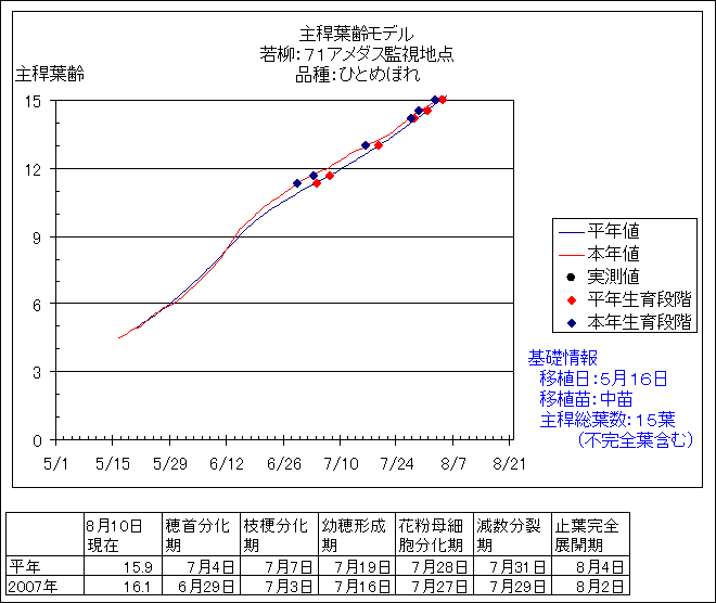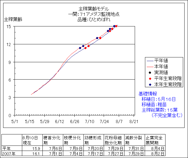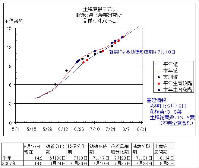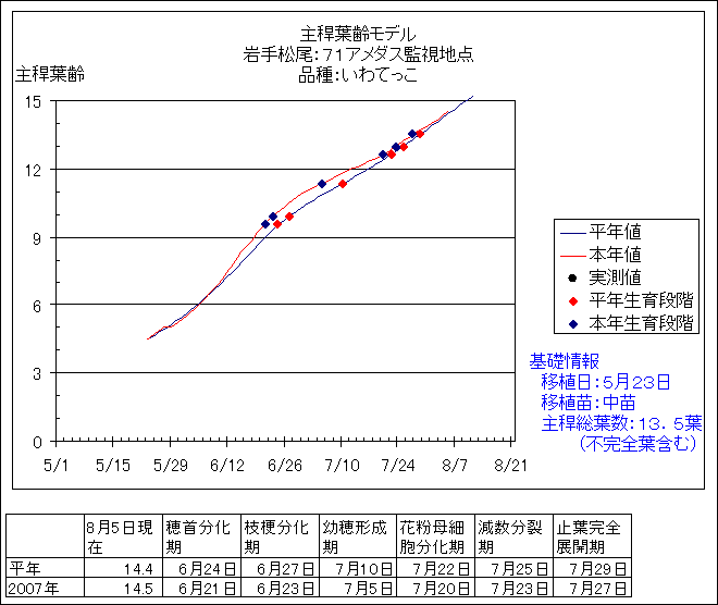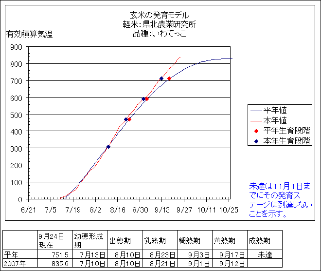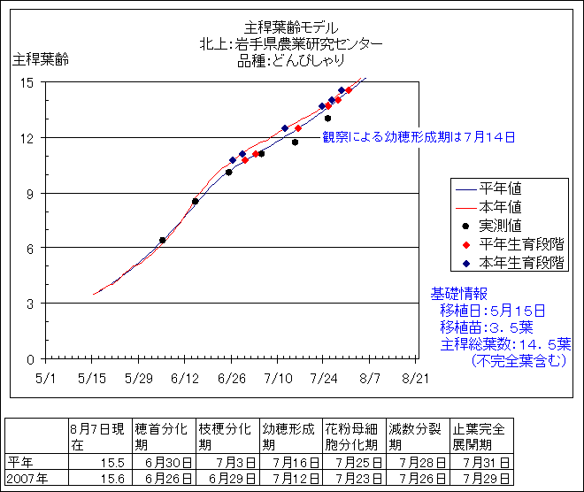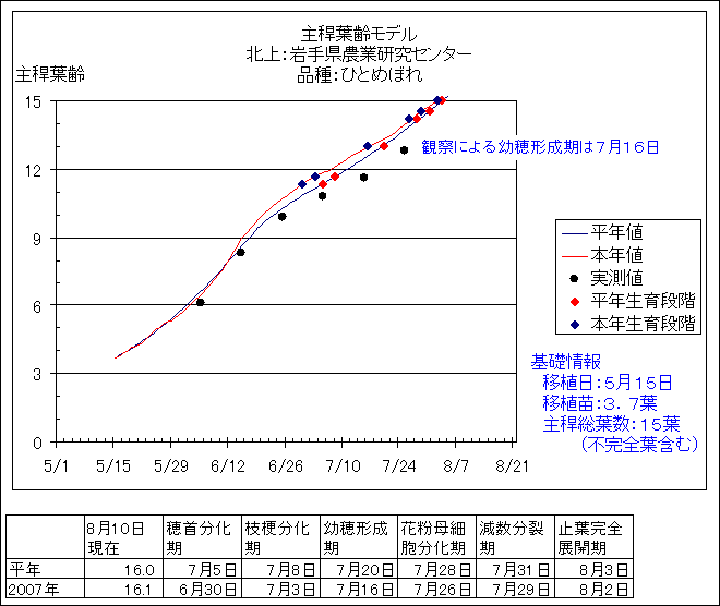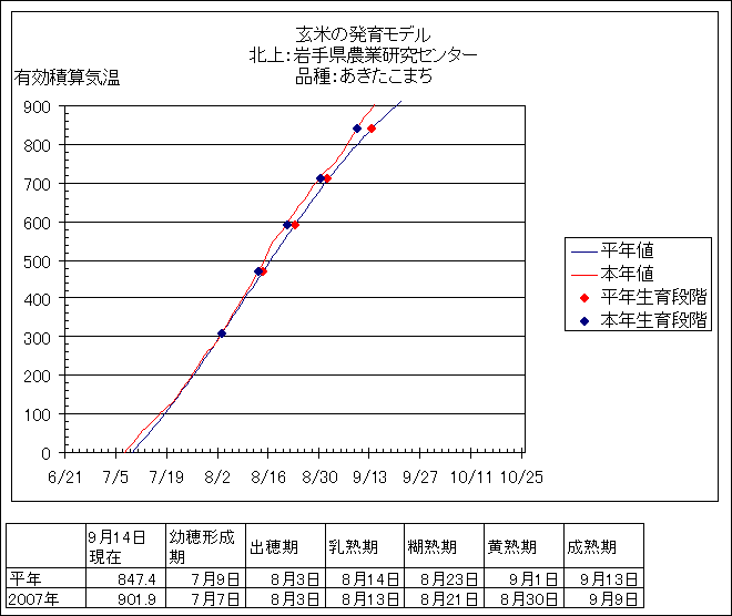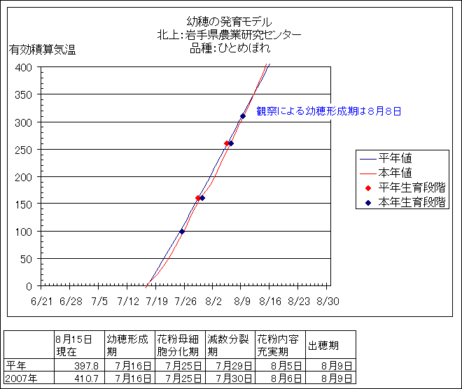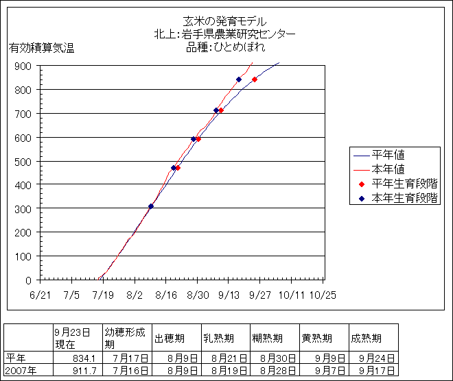 | 岩手県農業研究センター | ひとめぼれ | <葉齢進度予測編> | ・ | <穂の発育予測編> | ・ | <玄米の発育予測編> |