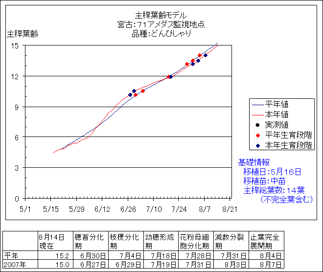 | 福島県川内 | ひとめぼれ | <葉齢進度予測編> | ・ | <穂の発育予測編> | ・ | <玄米の発育予測編> |