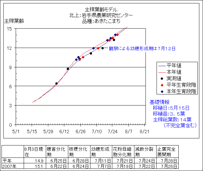 | 岩手県農業研究センター | あきたこまち | <葉齢進度予測編> | ・ | <穂の発育予測編> | ・ | <玄米の発育予測編> |