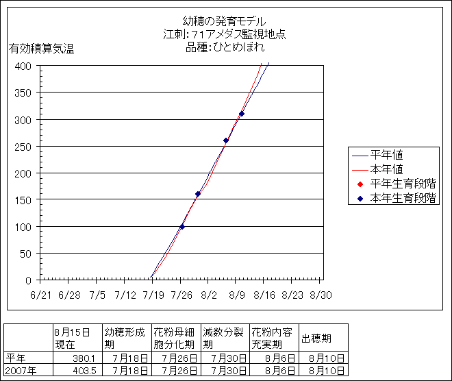 | 宮城県古川農業試験場 | ひとめぼれ | <葉齢進度予測編> | ・ | <穂の発育予測編> | ・ | <玄米の発育予測編> |