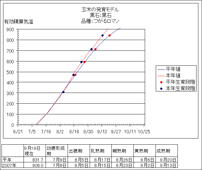 | 青森県黒石 | つがるロマン | <葉齢進度予測編> | ・ | <穂の発育予測編> | ・ | <玄米の発育予測編> |