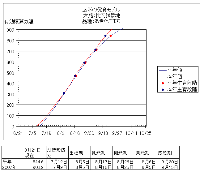 | 秋田県比内試験地 | あきたこまち | <葉齢進度予測編> | ・ | <穂の発育予測編> | ・ | <玄米の発育予測編> |