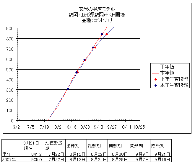 玄米の発育予測  Previous Year < 2004年 2005年 2006年 2007年・ 2008年 > Next Year
