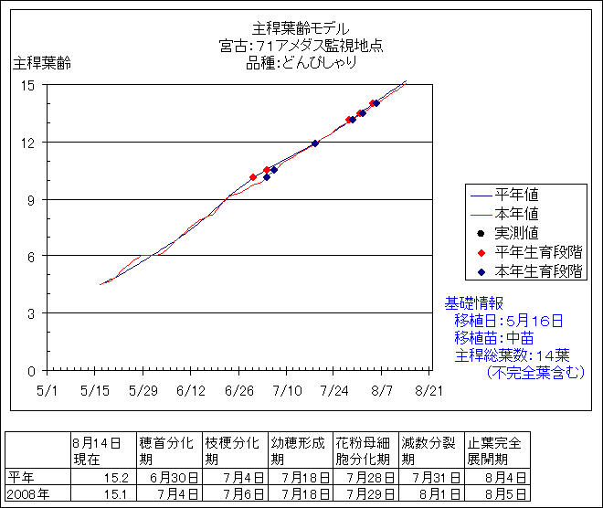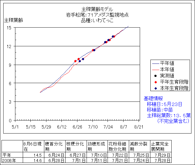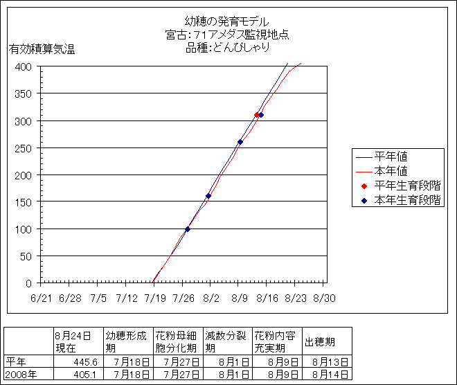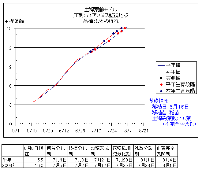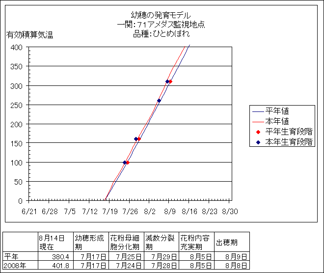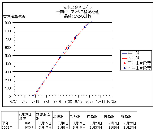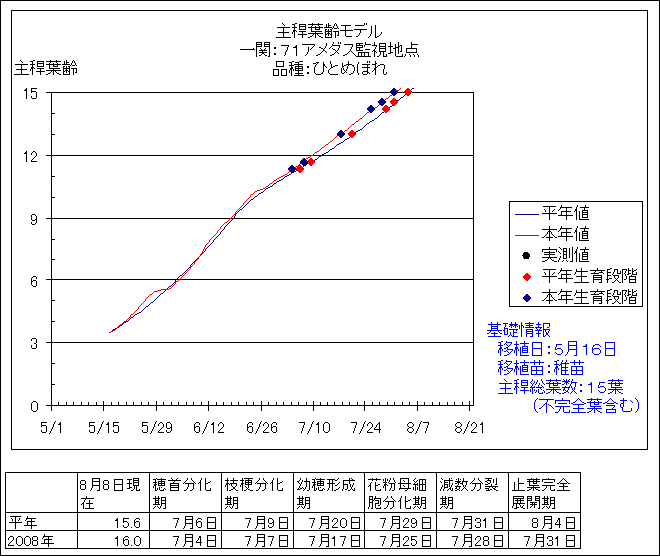 | 青森県八戸市 | 現地試験圃場 (ひとめぼれ) | <葉齢進度予測編> | ・ | <幼穂の発育予測編> | ・ | <玄米の発育予測編> |