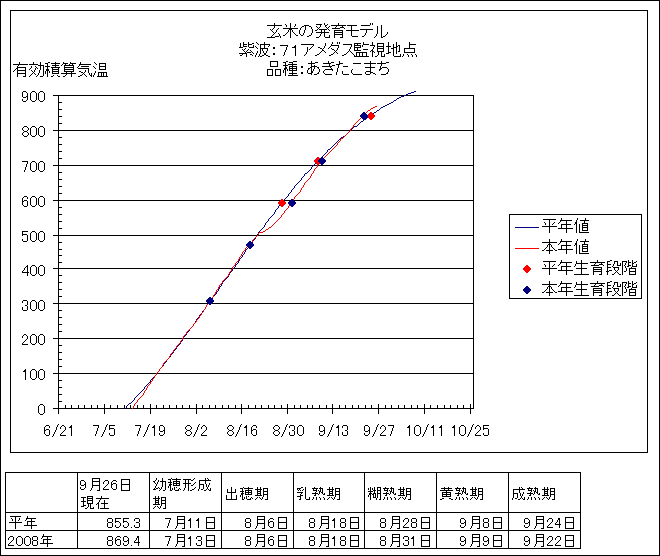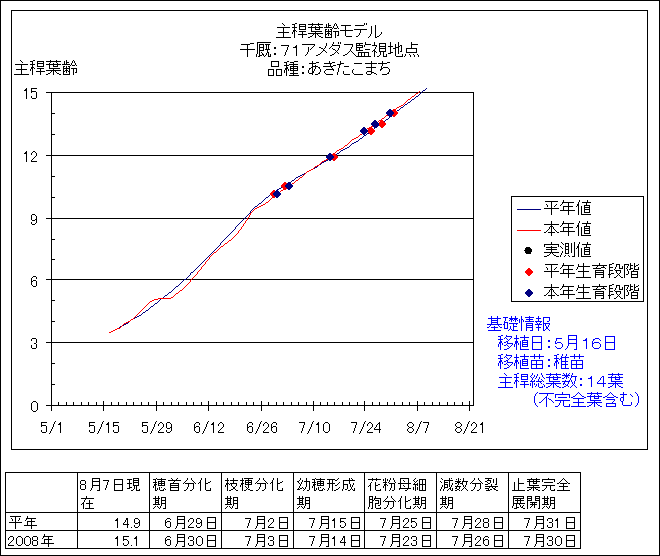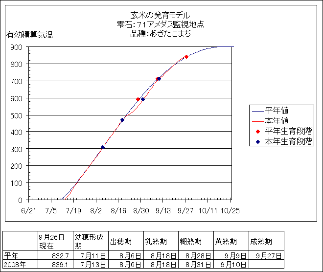 | 秋田県農業試験場 | あきたこまち | <葉齢進度予測編> | ・ | <穂の発育予測編> | ・ | <玄米の発育予測編> |