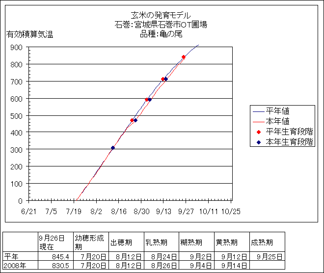 玄米の発育予測  Previous Year < 2006年 2007年 2008年・ 2009年 2010年 > Next Year