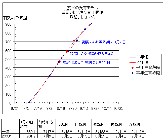 玄米の発育予測  Previous Year < 2007年 2008年 > Next Year