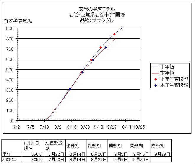 玄米の発育予測  Previous Year < 2007年 2008年 2009年・ 2010年 2011年 > Next Year