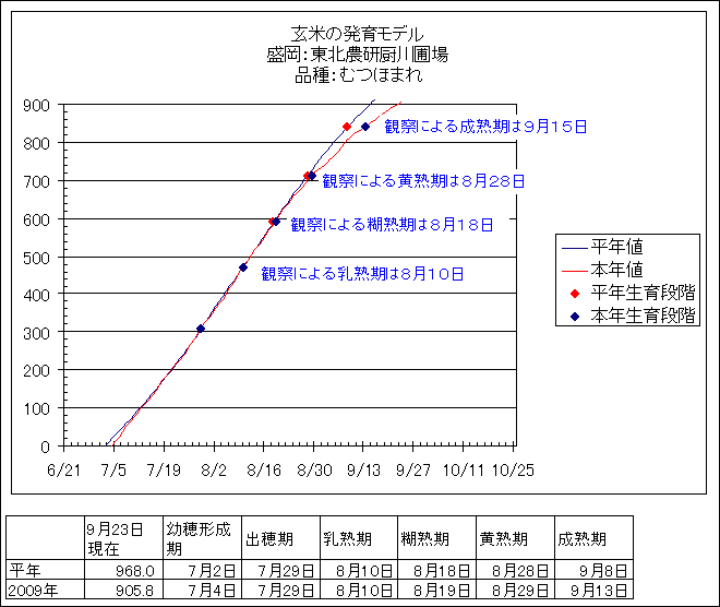 玄米の発育予測  Previous Year < 2007年 2008年 2009年・ 2010年 2011年 > Next Year