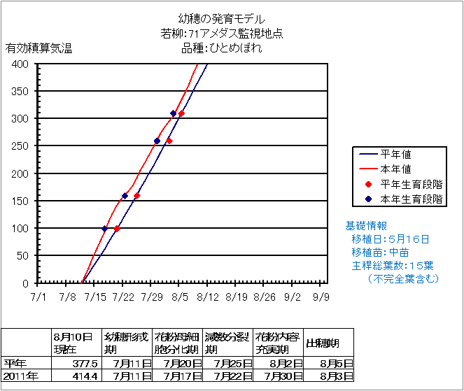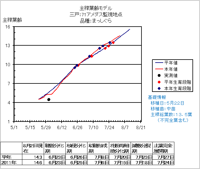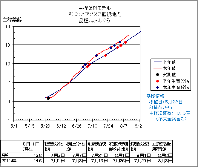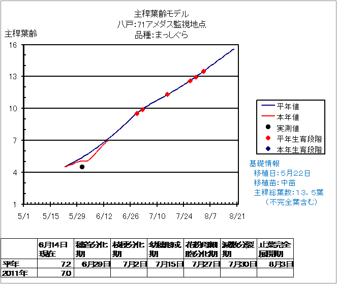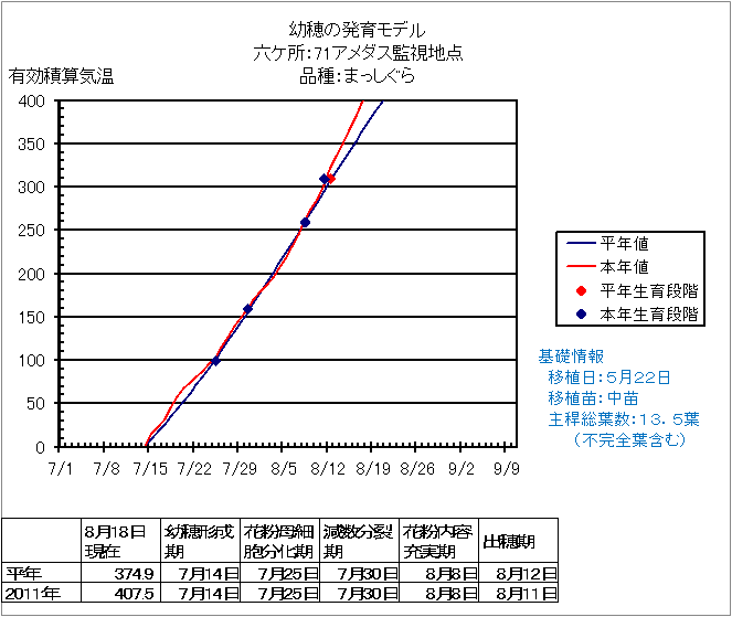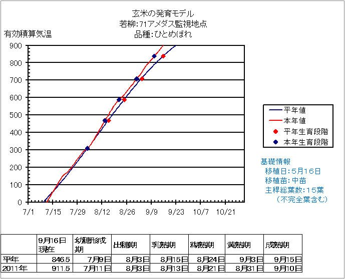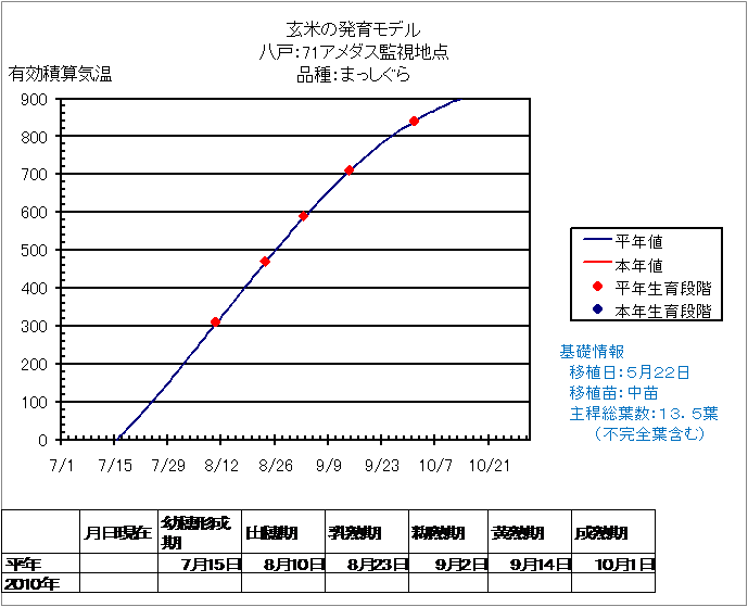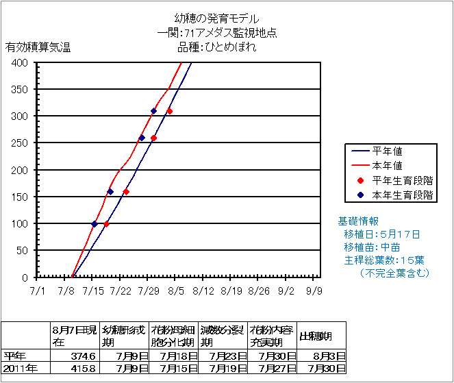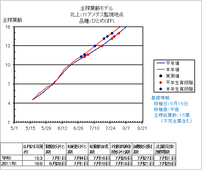 | 青森県八戸市 | 現地試験圃場 (ひとめぼれ) | <葉齢進度予測編> | ・ | <幼穂の発育予測編> | ・ | <玄米の発育予測編> |