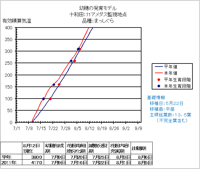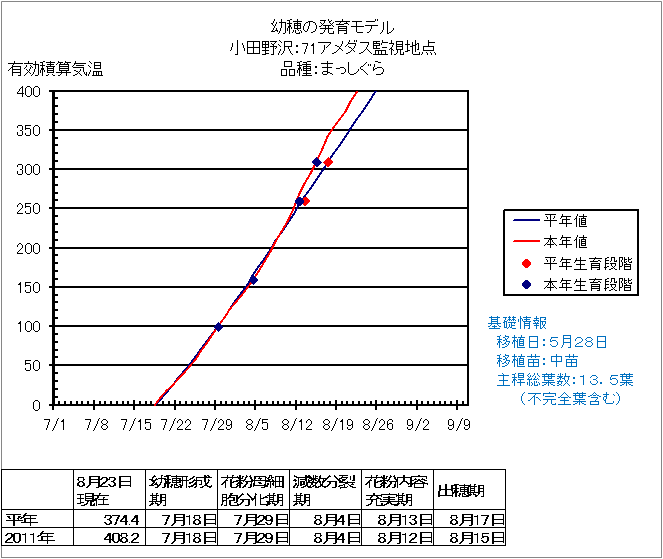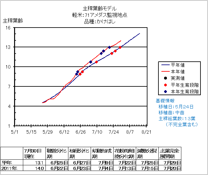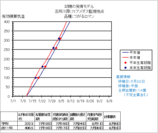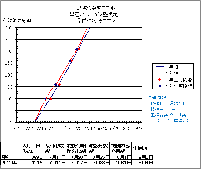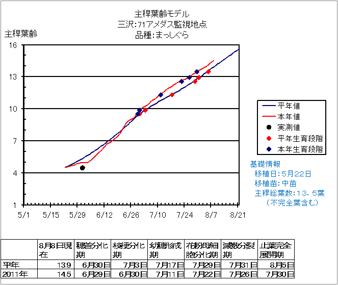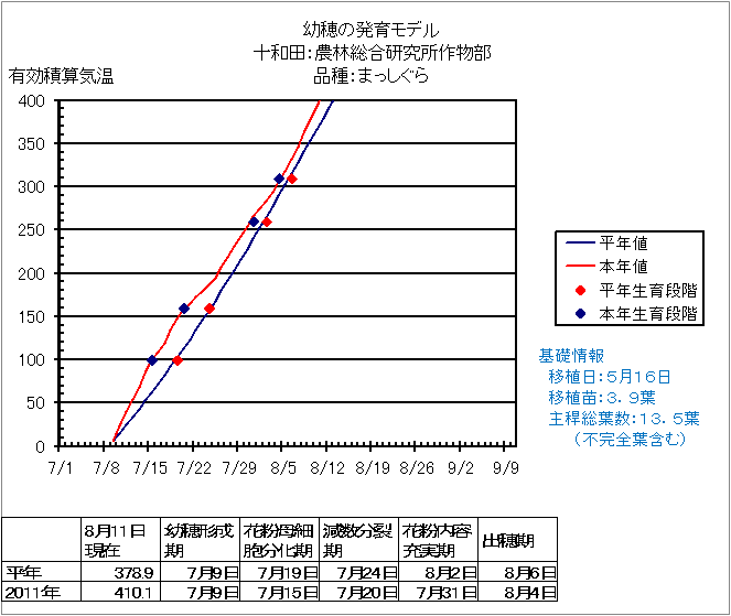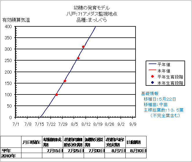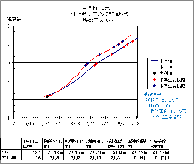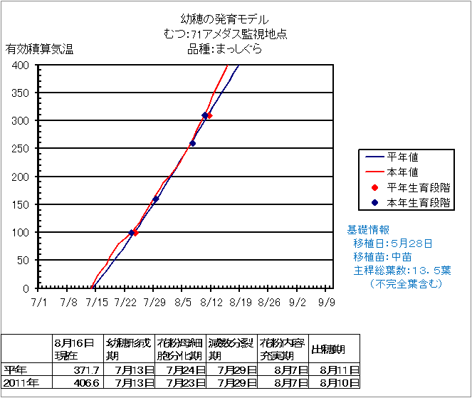 | 青森県八戸市 | 現地試験圃場 (ひとめぼれ) | <葉齢進度予測編> | ・ | <幼穂の発育予測編> | ・ | <玄米の発育予測編> |