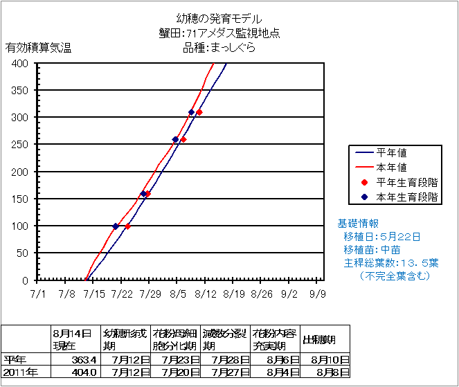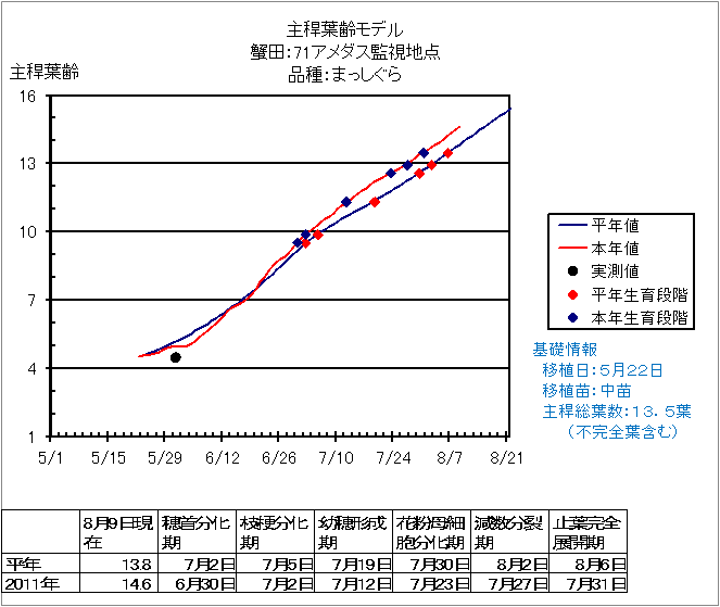 | 青森県蟹田 | まっしぐら | <葉齢進度予測編> | ・ | <穂の発育予測編> | ・ | <玄米の発育予測編> |